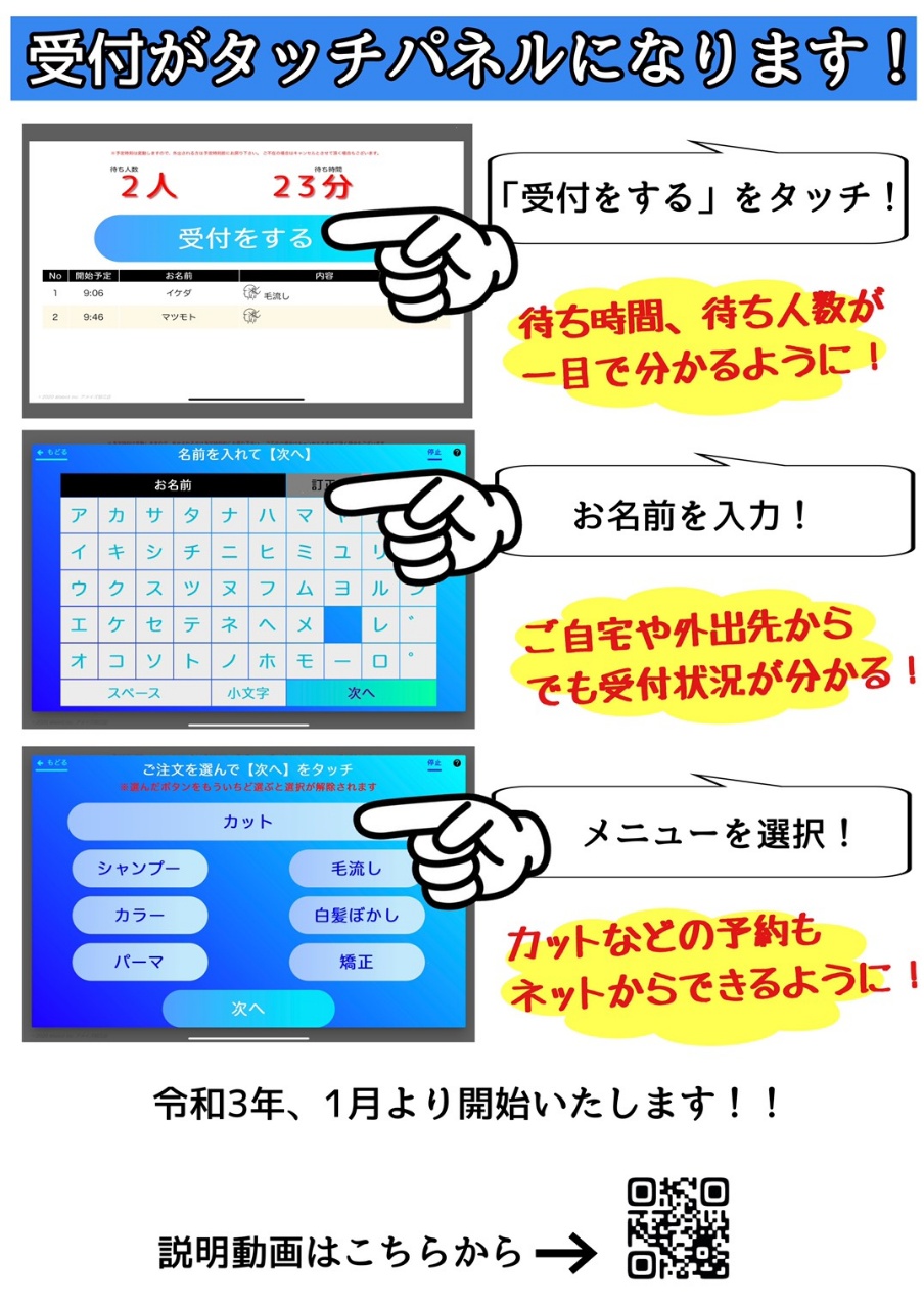 令和3年1月〜受付がタッチパネル操作になります!