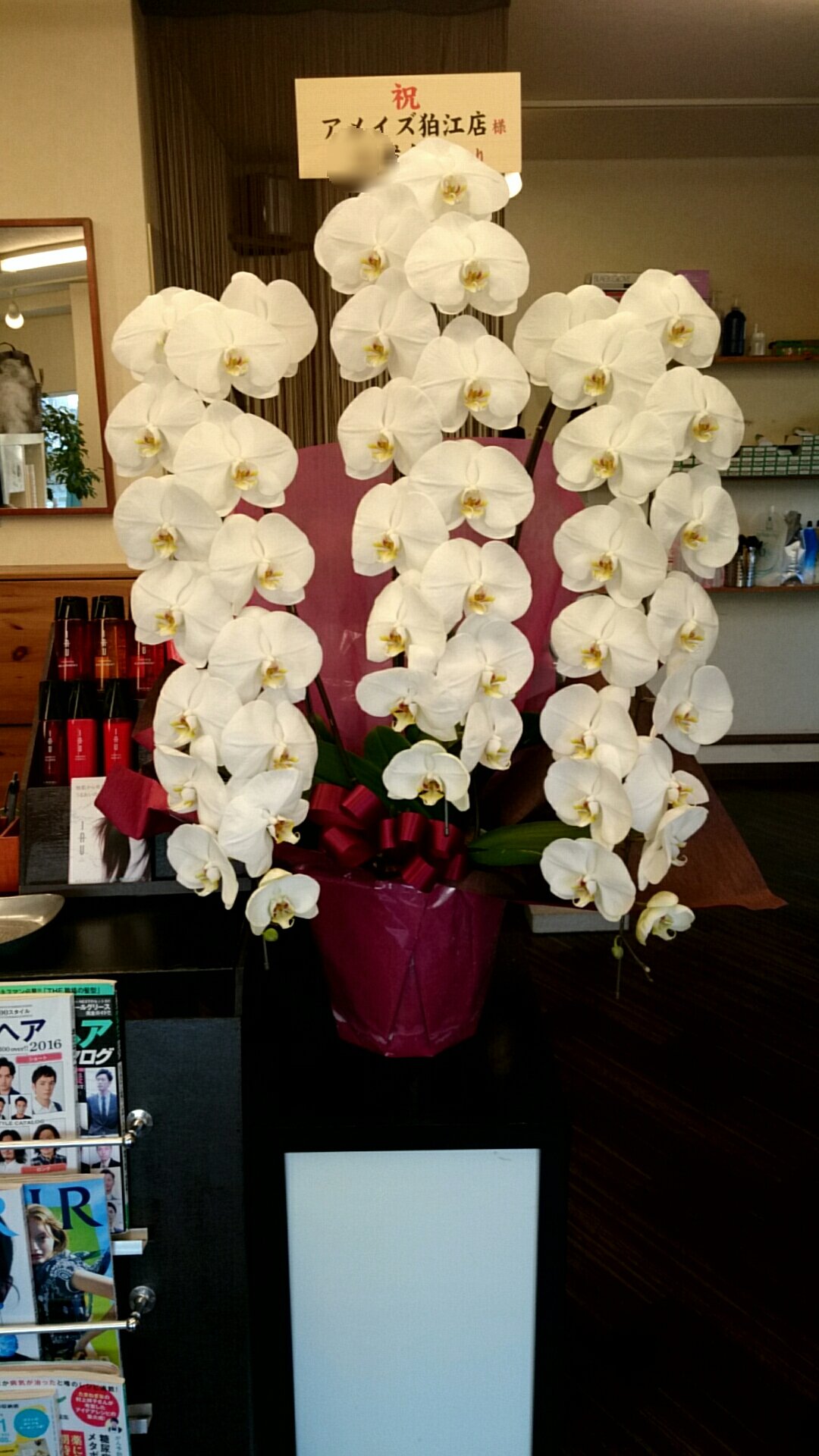 INFO 10周年記念に胡蝶蘭を頂きました! Amaze狛江の10周年記念にとても豪華な胡蝶蘭を頂きました‼店内が一気に明るく華やかになりました♪ありがとうございます(>_<)皆様、ご来店の際には是非近くでご覧になってくださいね‼ 2016.02.28 INFO